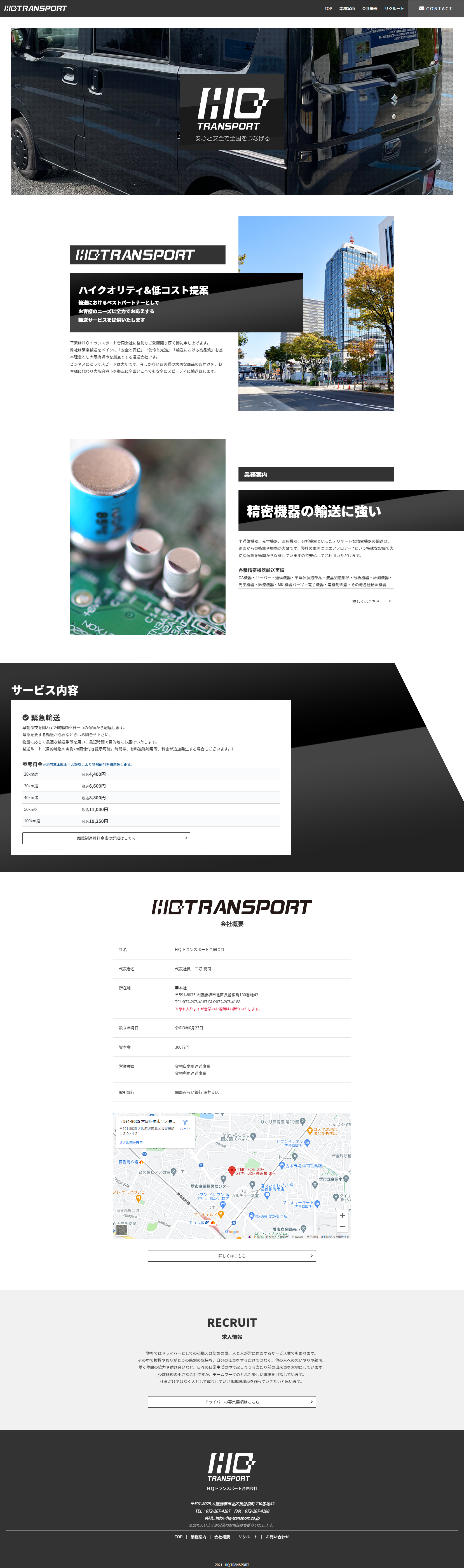 ABOUT緊急輸送をメインに「安全と責任」「使命と完遂」「輸送における高品質」を基本理念とし大阪府堺市を拠点とする運送会社「HQトランスポート」様のコーポレートサイトリニューアル・ホームページ制作をAmZ-designで担当させて頂きました。