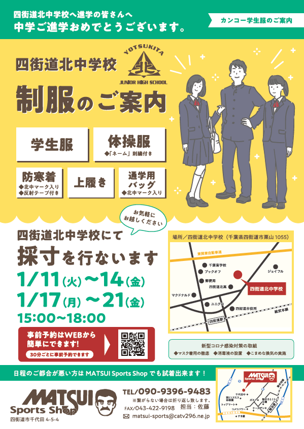 ABOUT千葉県四街道市で制服・運動服・部活用ユニフォームなどの販売店様です。